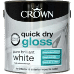 Crown Quick Dry Gloss – greitai džiūstantys blizgūs dažai, skirti vidaus ir lauko darbams. Tinka medienai ir metalui, atsparūs plovimui, trinčiai bei atmosferos poveikiui. Patogus naudojimas ir puikus estetinės apdailos rezultatas.